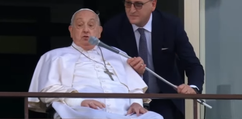 当天中午,有超过3千名信友聚集在医院的入口处广场,当教宗坐轮椅被推到医院大楼五层的一个小阳台时,现场响起了热烈的掌声与欢呼声。教宗向众人微微挥手微笑,随后,教宗的目光落在了一个女士身上,并用微弱的声音说:“谢谢大家,我看到了一位拿着黄色鲜花的女士,她很棒!”聚集的人群情不自禁地不断高喊“教宗方济各,我们爱您,我们支持您!”最后,教宗降福了聚集的人群。