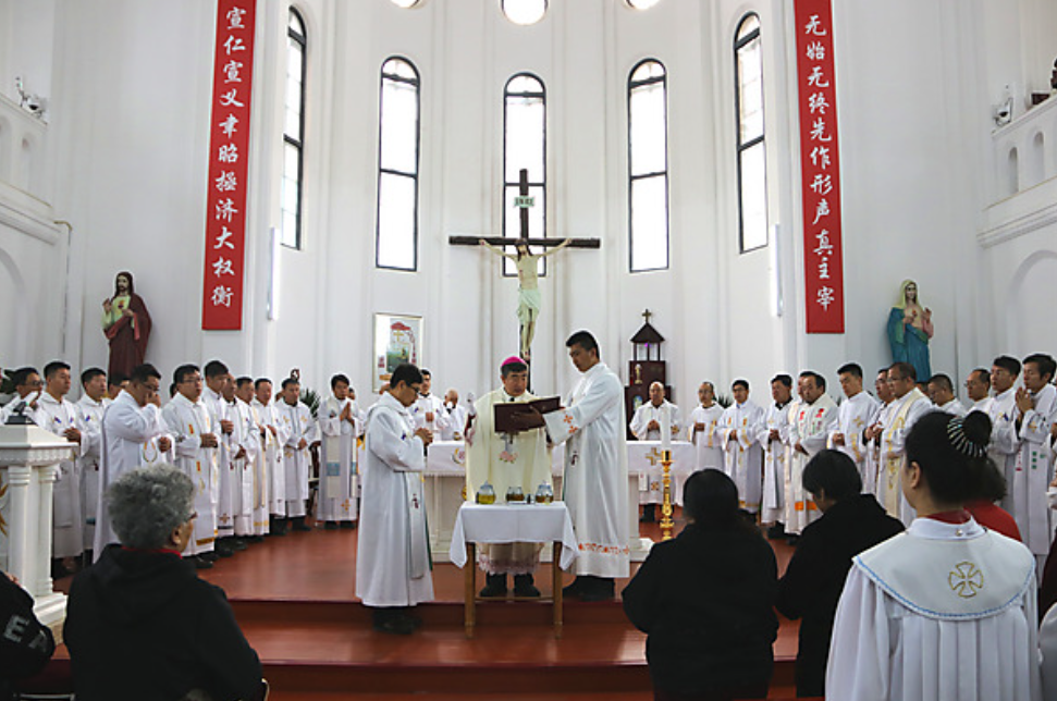 内蒙古呼和浩特教区于4月8日在呼和浩特主教座堂举行了圣油弥撒,由于教区地域广阔,神职人员分布较为分散,因此将弥撒时间提前。