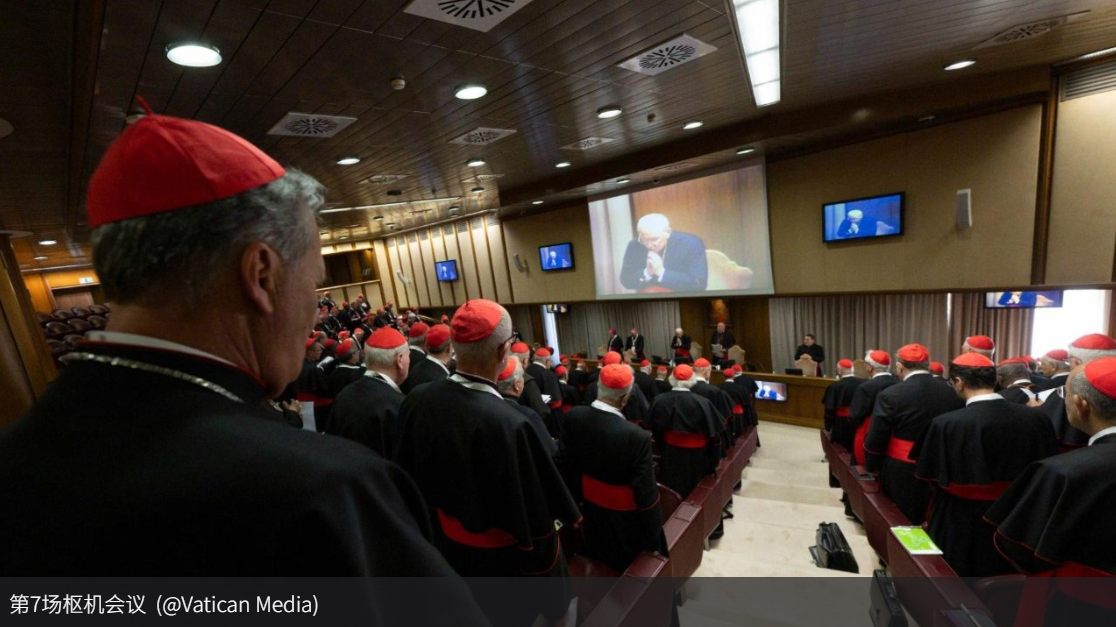 枢机团第七场会议于4月30日举行,共有181位枢机参与,其中124位具选举权。会议涉及多个议题,讨论焦点之一是经济架构如何持续支持教宗的改革进程。5月1日为假日,全体大会暂停。