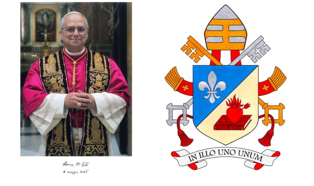 据梵蒂冈新闻网报道,圣座新闻室5月10日公布了良十四世的牧徽及格言,并发布了新当选教宗的照片。