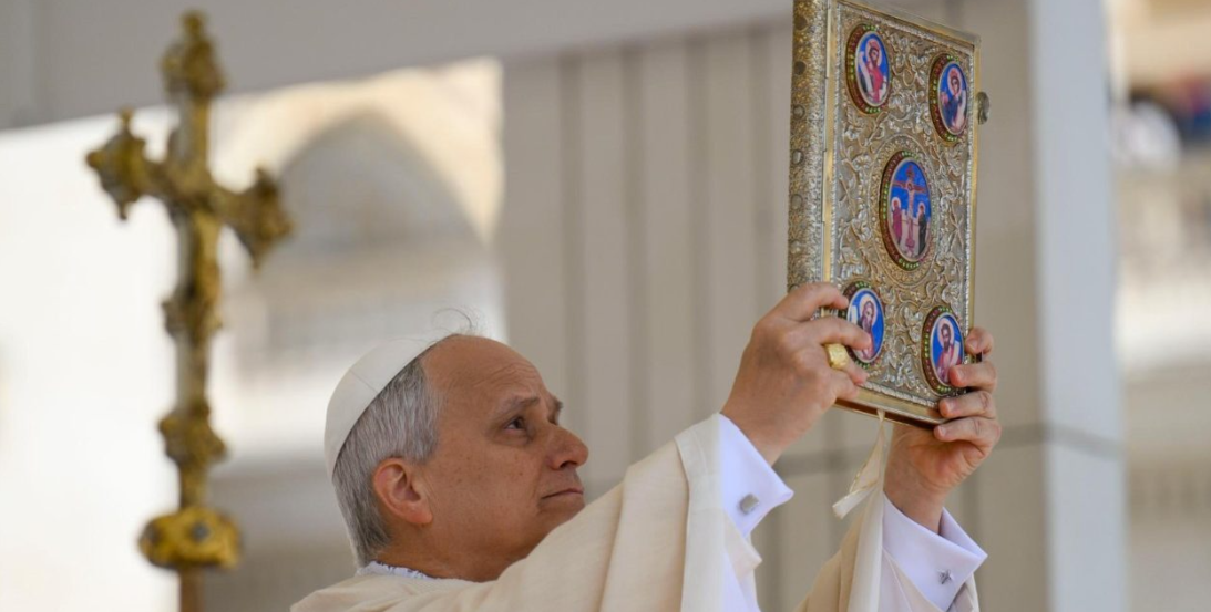 教宗良十四世的就职弥撒大典于5月18日主日在圣伯多禄广场举行,大约 20 万人参礼。在教宗的话语中穿插著他当选时已经表现在面容上的激动心情,以及因圣伯多禄广场上海洋般人群中爆发出的掌声而动容。他们就像贝尼尼的圆柱一样,围绕在教宗和整个教会身旁,呈现出喜悦、多彩、期待及独特的面貌。