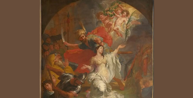 圣迪姆芙娜是一位基督徒女孩,她拒绝嫁给父亲这种邪恶的行为。她勇敢地反抗,带着她的忏悔神父圣格雷伯努斯(St. Gerebernus)和几个仆人逃离爱尔兰,前往比利时。