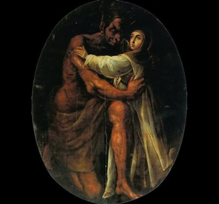 天使们爱戴并敬重圣罗撒·利马(Rose of Lima’s),而魔鬼们却对她恨之入骨,想尽一切办法让她感受到他们的仇恨和愤怒。魔鬼曾化作巨人闯入她的牢房。它试图撕咬她,却因天主的大能而未能将她撕成碎片。它抓住她,在地上疯狂地拖拽,直到这位贞洁的少女用先知的话语恳求她神圣的配偶保护她:“主啊,不要让那些仰望你的人遭受这些地狱恶魔的暴虐。” 敌人随即逃走。