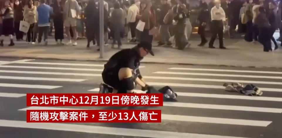 据亚洲新闻报道, 12月19日傍晚下班时间,一名持长刀的青年男子在台湾台北市中心制造恐慌,造成3人死亡、5人受伤。在警方追捕过程中,该男子从一栋建筑坠亡。据行政院长卓荣泰(CHO Jung-tai)称,该男子先向台北市中心火车站投掷烟雾弹,然后前往附近繁华商业区的地铁站,沿途袭击行人。