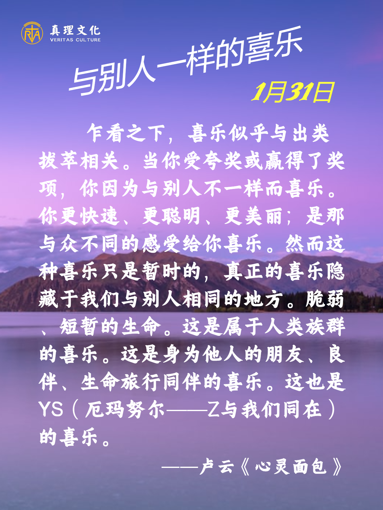 主耶稣基督,感谢祢与我们同在同行,将救恩带给了我们,请帮助我们珍惜天福,每天在福音中生活。阿们!