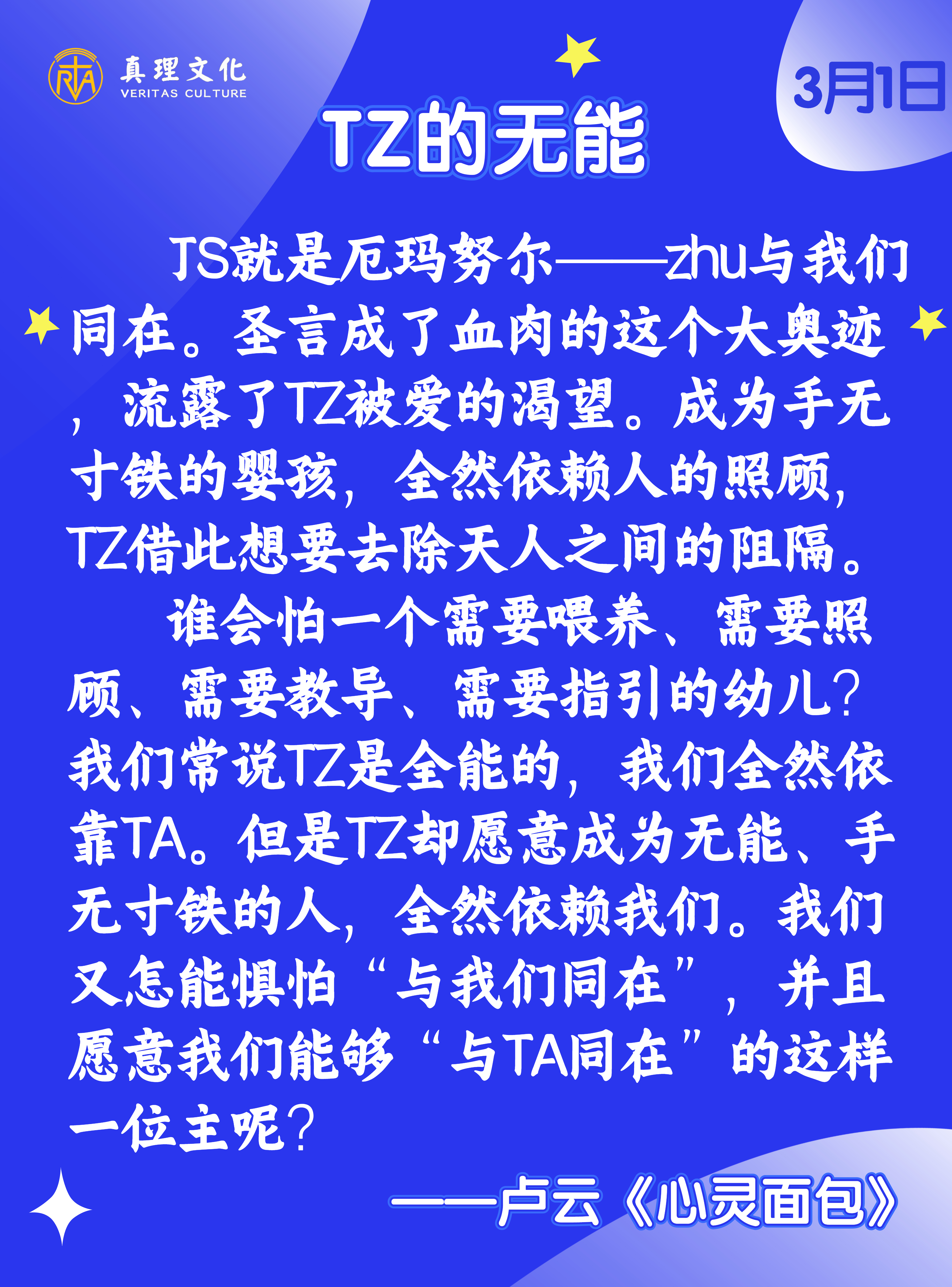 人和主的相遇是美好的,以至伯多禄说:「主啊,我们在这里真好!」我们在祈祷中所得到的恩宠和光照,不是为停留在那里,而是为下山去服务。每一次与主的相遇,都应该激发我们更大的勇气去牺牲。