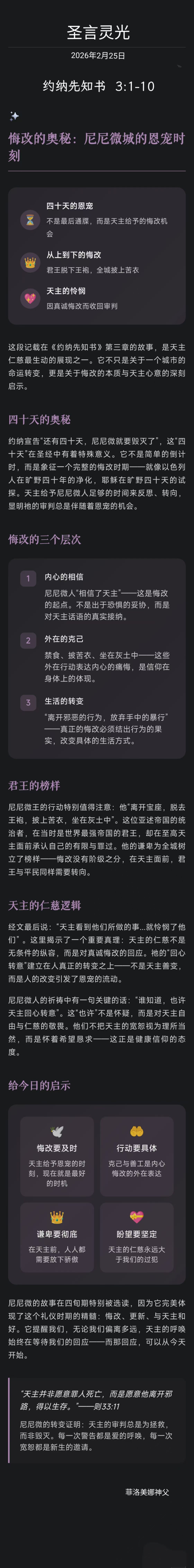 【2026年2月25日周三】 约纳先知书 3:1-10 :悔改的奥秘——尼尼微城的恩宠时刻