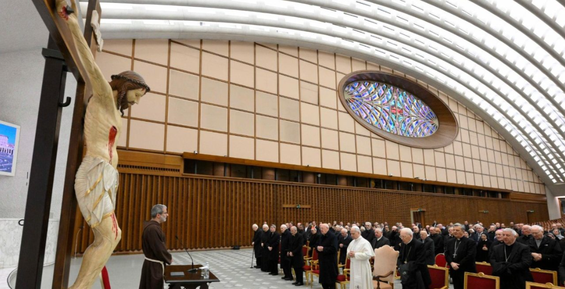 教宗府讲道神师帕索里尼神父(Fr. Roberto Pasolini)在教宗的见证下,向罗马教廷发表了他的第三次四旬期默想,主题是“使命:向万物宣扬福音”。“宣扬福音不是为了赢得人,而是为了与人相遇。”