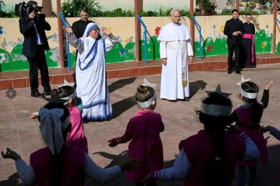 当天早上,教宗离开圣座大使馆后,短暂地看望了由仁爱传教修女会管理的非洲圣母幼儿园。圣座新闻室在即时通信软件(Telegram)的频道上提到此事,并写道,孩子们为教宗表演了一个简短的节目。他问候孩子和修女们后,便前往机场。