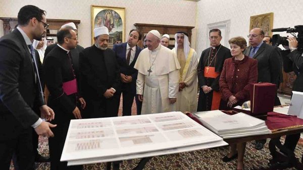 ♦教宗11月15日上午在梵蒂冈接见了阿玆哈尔大伊玛目塔伊布(Ahmed Al-Tayeb),陪同到访的有阿拉伯联合酋长国副总理纳哈扬(Saif bin Zayed Al Nahyan,),埃及驻圣座大使以及阿玆哈尔大学和《人类兄弟情谊》高层委员会的一些代表。同时出席会见的有圣座宗教交谈委员会主席阿尤索(Miguel Ángel Ayuso Guixot)枢机和教宗秘书加伊德(Yoannis Lahzi Gaid)蒙席。