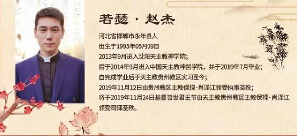 ♦11月24日,贵州教区于贵阳北堂举行司铎祝圣典礼,若望·张梓浩、若瑟·刘学洋、若瑟·赵杰三位执事由教区肖泽江主教手中领受了铎职。三位新铎均毕业于中国天主教神哲学院。(信德网)