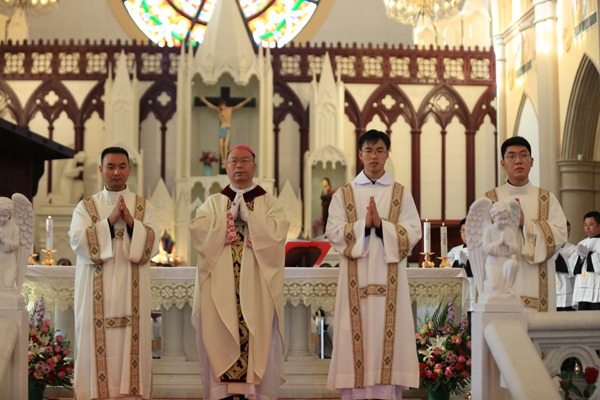 ♦12月7日圣盎博罗削圣师瞻礼,在苏州教区主教府举行授予执事圣职典礼。江苏苏州教区池永龙(若翰)、浙江台州教区文小敏(若望)、朱鑫超(若瑟)三位修士,自苏州教区徐宏根主教手中领受执事圣秩。来自苏州、台州、河北等地的20余位神父参礼,新执事的亲友和两地众多教友共同见证了他们修道生活的新开始,并为他们祈祷,送上祝福!(信德网)