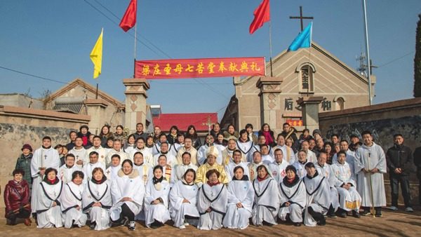 ♦12月11日,济南教区禹城梁庄堂区举行隆重的弥撒圣祭,庆祝七苦圣母堂修缮竣工暨奉献典礼。济南教区张宪旺主教主持礼仪,梁庄堂区本堂樊义德神父、季宝玉执事襄礼。教区各堂区17位神父受邀共祭,各堂区会长和教友代表参礼。张主教在讲道时与大家一起回忆了梁庄堂区的信仰历程,勉励大家妥善处理生活与信仰的关系,牢记天主儿女的使命,热心进堂,甘于奉献,勇传福音。(信德网)
