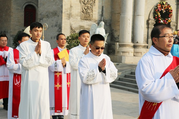 ♦12月13日圣女路济亚瞻礼,西安教区在圣方济各主教座堂为党刚、龙志广和张伟刚三位修士举行了隆重的晋升执事典礼。礼仪由党明彦主教主礼,张柔石神父和童多默神父襄礼,40位神父共祭,2位执事辅祭,500余名教友参与礼仪。龙志广执事代表三位新执事在答谢词中说到:希望教友们多多为他们祈祷,使他们能更好地服务于祭台,更好地服务于教会,也更好地服务于教友们。(信德网)