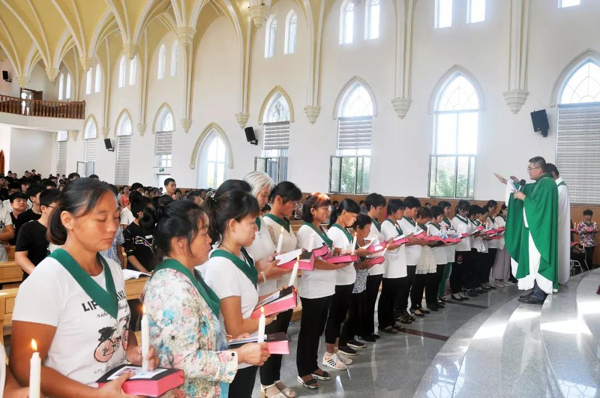 河北衡水教区深州市天主堂在9月9日的主日弥撒中,本堂张建方司铎在讲道后宣布堂区亚纳善会正式成立。第一批31位会员立于神圣的祭台前,亚纳会正副会长依次为会员授予会带与圣牌。接着,副本堂郭桂全神父代表堂区向每一位会员赠送圣经,最后二位司铎为会员覆手行派遣礼。