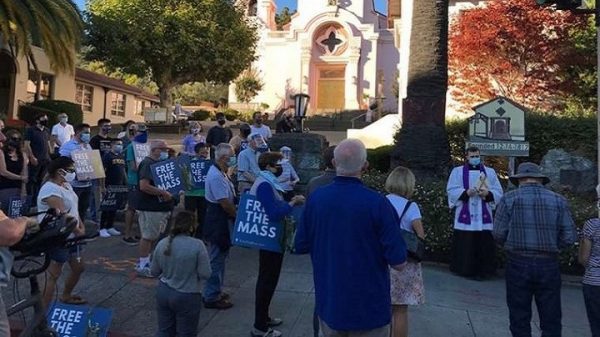 圣辣法厄尔堂副本堂法勒(Kyle Faller)神父在13日晚的和平集会中,带领信众诵念玫瑰经,并主持了圣像被推倒的赔补仪式。旧金山总主教郭德麟(Salvatore Cordileone)也将于10月17日,在雕像原矗立点举行驱魔祈祷。