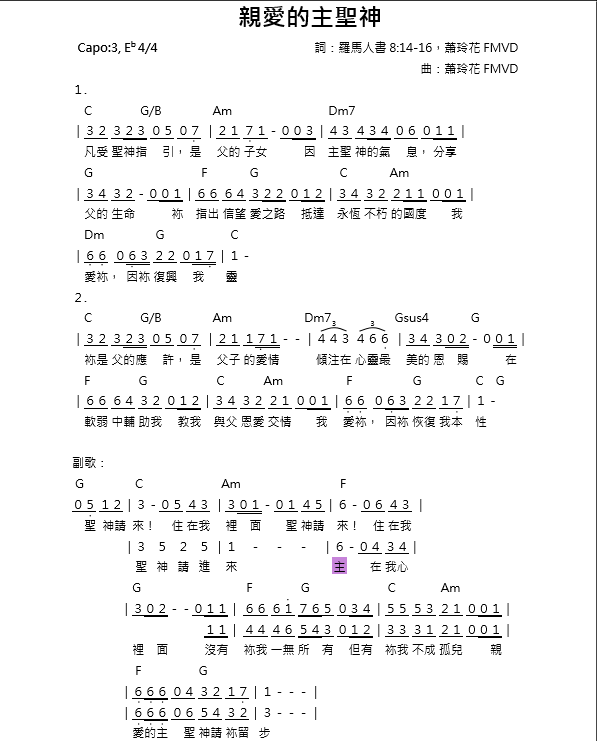 【第三届华语圣歌创作比赛】一等奖:《亲爱的主圣神》萧玲花