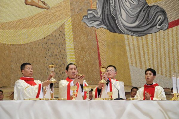 此次被祝圣的新铎共三位:郭殿刚、张献纲、陈雪飞。弥撒讲道中,孙主教对三位新铎父母的奉献表示感谢,并鼓励三位新铎做耶稣的好牧人。同时主教特别提及,虽然我们教区司铎人数已经过百,看起来似乎圣召已经很多,但普世教会司铎与修女圣召仍面临危机,他呼吁所有信友继续为圣召献上祈祷,使能有更多青年男女加入献身的行列。