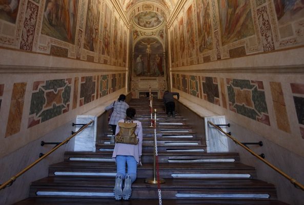 据美国CNS网报道,圣阶堂本堂雷迪(Leonello Leidi)神父表示,他曾见到一位情绪激动的游客来此跪着登上圣阶。这位游客曾感染新冠且面临生命危险,后来他康复了,于是他来到圣阶以感谢天主的治愈。雷迪神父指出,这位游客与许多人一样,将圣阶视为复活和新生命的标记,当他们跪着登上圣阶时,他们便与耶稣的苦难深刻交融。此外,人们也可以在圣阶默想并找到他们身边所发生的事情的意义。