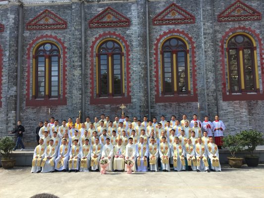 本台消息:今天(11月11日)上午9时,温州教区在圣保禄堂为张星星、任智慧执事举行了晋铎典礼。晋铎弥撒由苏州教区徐宏根主教主礼,来自杭州、吉林等地的60余位神父共祭。