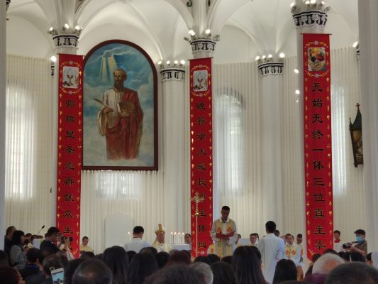 本台消息:今天(11月11日)上午9时,温州教区在圣保禄堂为张星星、任智慧执事举行了晋铎典礼。晋铎弥撒由苏州教区徐宏根主教主礼,来自杭州、吉林等地的60余位神父共祭。