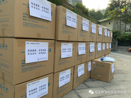 据“天主教深圳圣安多尼堂” 新闻媒体组报道,深圳天主教会心系香港教友健康,铭记两地教会一家亲,用爱的行动延续深港教会“守望相助、共同抗疫”的信念。圣安多尼堂主任司铎张天路神父再次募捐5万只防护口罩,由香港教区圣若瑟堂代收,捐赠给香港教区需要的堂区和服务机构。