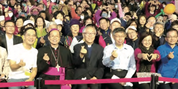 下午6时,游行至天主教圣家堂时, 台北市长柯文哲和天主教台北总教区钟安住总主教一起点燃「复活蜡」,祈祷以「世界之光」,照亮世人应走的道路,以爱全心迎接新希望的2021年。