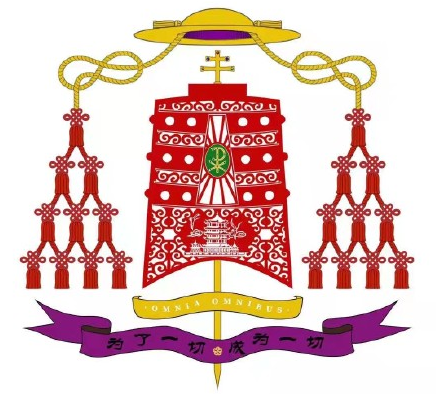 一位参与典礼的消息人士为本台提供了崔庆琪主教的牧徽图片,图片显示牧徽融合了许多中国元素,包括:剪纸、中国结和黄鹤楼等,其轮廓也是来源于湖北省著名文物——曾侯乙编钟,寓意我们每个人都要朝乾夕惕、时时警醒,也提醒我们除祈祷之外,还要用音乐来赞美上主。而这些中国元素,其寓意则是教会需要中国化,需要与中国文化相融合,而位居其中的基督标志,则是寓意天主是一切的圣化者、推动者、临在这和创造者。牧徽设置别致,而富有深意。