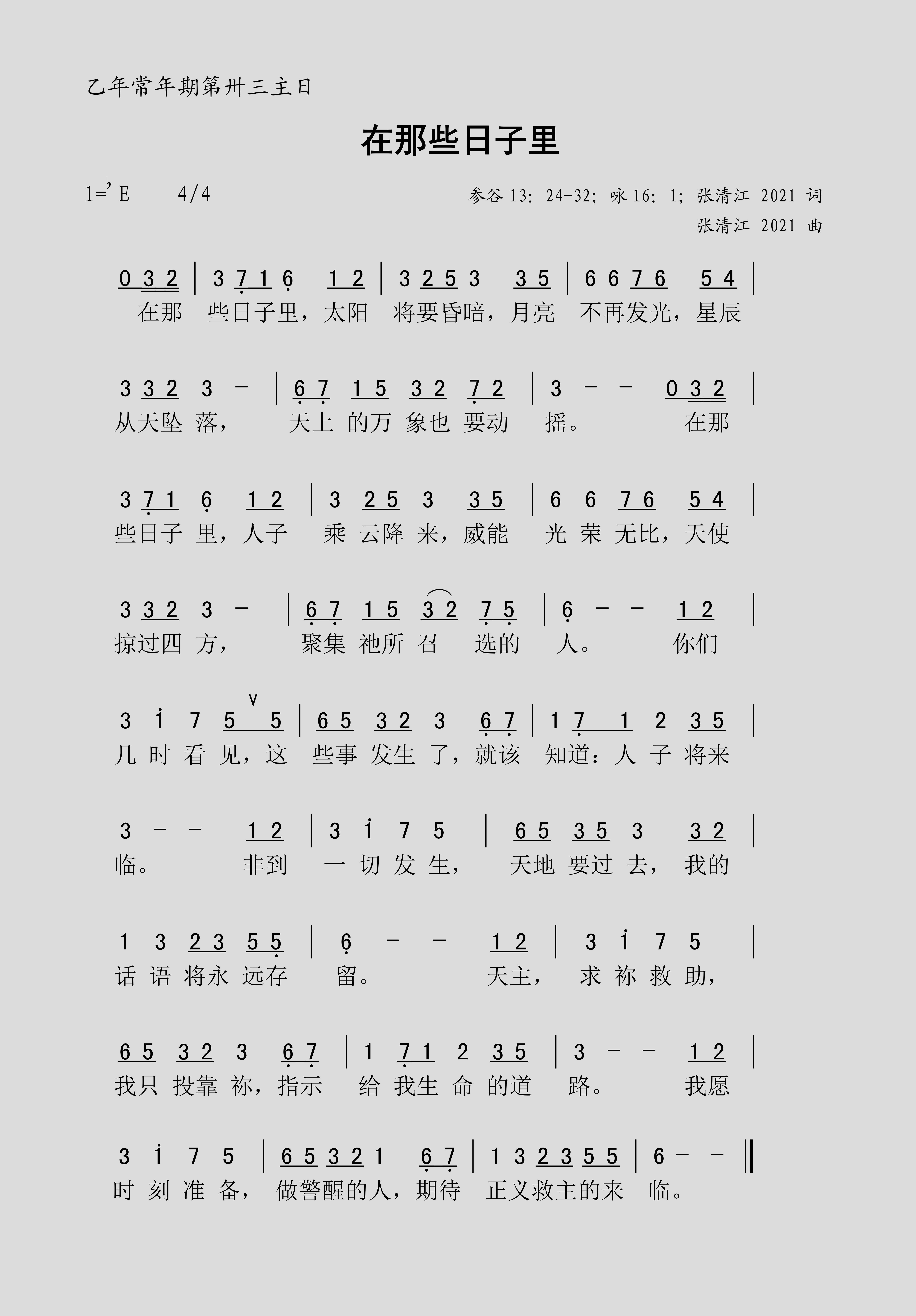 【主日赞歌】| 在那些日子里——乙年常年期第33主日